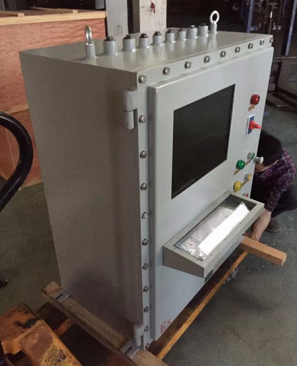PLC帶觸摸屏做成防爆控制柜或者防爆控制箱外形可以根據(jù)用戶的不同需求而定,一般為立式、琴臺式,壁式等等,內置PLC與觸摸屏連接,可以通過防爆鍵盤,防爆鼠標進行控制即可,觸摸屏密封保護為5mm厚度的鋼化玻璃進行防爆密封處理。