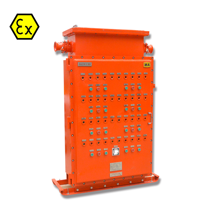 適用范圍適用于具有爆炸性危險氣體(甲烷)和煤塵的礦井中。在交流50Hz,額定工作電壓1140V/660V/380V條件下,能直接控制額定電流在400A以內(nèi)的鼠籠型三相異步電動機,具有短路、過載、斷相、漏電閉鎖等保護功能,適用于煤礦井下電機的控制。本電控柜主要用于防爆液壓機械閘、輸送機、皮帶機、給料機、破碎機、水泵、風機等設備的控制;有變頻、軟起等驅動方式。
